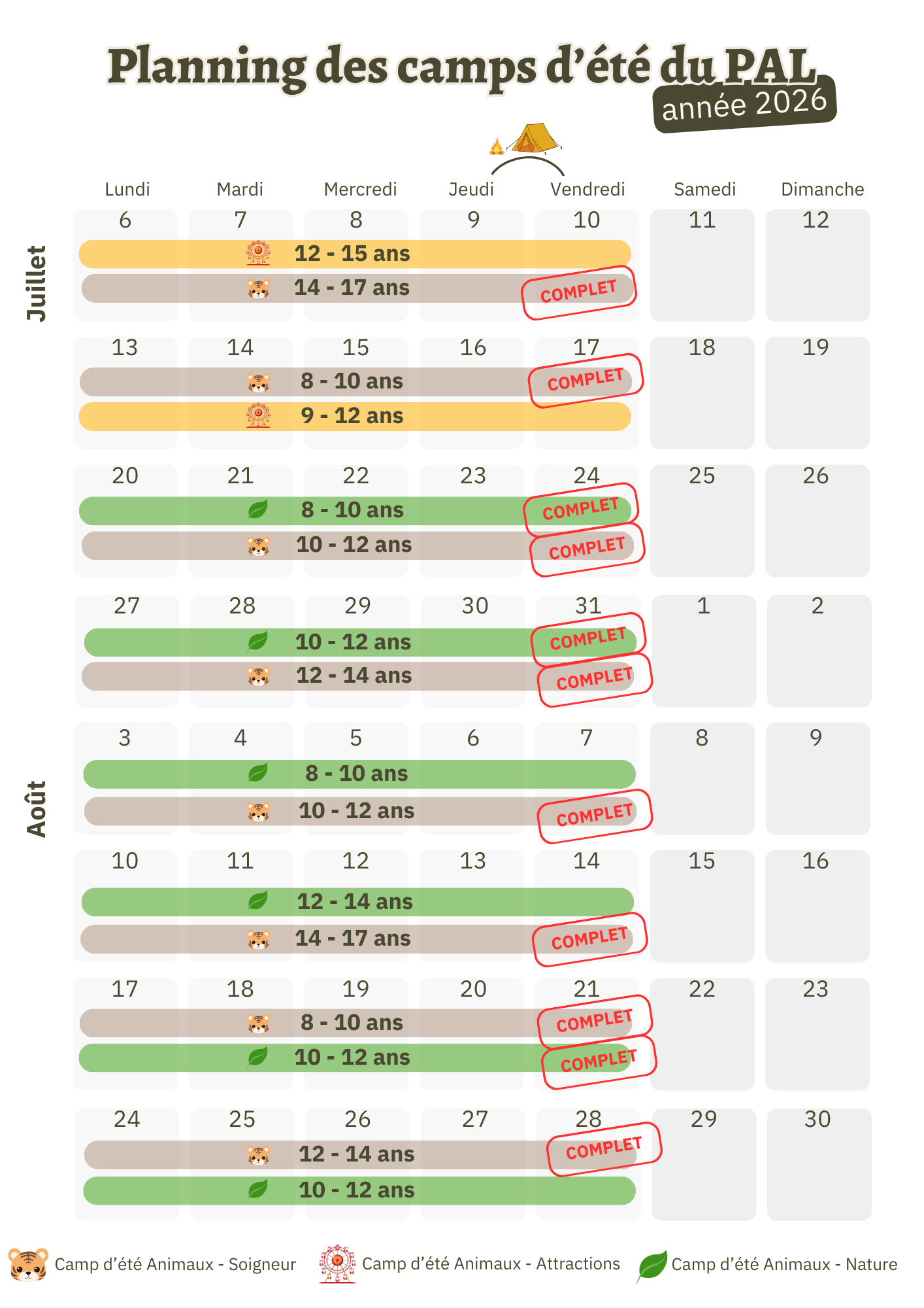 ATTENTION, LES DATES DES CAMPS D'ÉTÉ DIFFÈRENT SELON LES ÂGES DES ENFANTS.