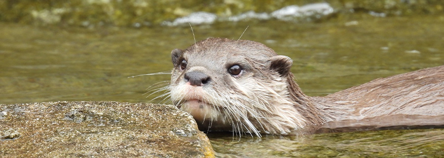 La loutre d'Asie est un mammifère aquatique dont le corps est recouvert d'une épaisse fourrure imperméable. Le plus souvent, la loutre nage à la surface de l'eau, tête à l'air. Elle ne plonge que pour se nourrir.