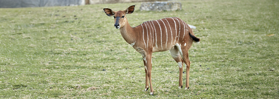 Le nyala a la possibilité de se dresser sur ses pattes postérieures pour atteindre les feuilles et les écorces des arbres.