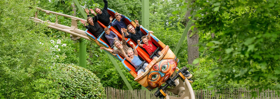 Dans un magnifique décor de temple en ruine envahi par une épaisse végétation, embarquez à bord de wagonnets de mine et dévalez les descentes et les courbes spectaculaires de ce train devenu fou !