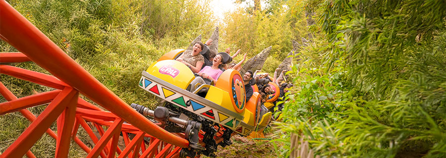 Dans une jungle totalement retournée par le passage de King Kong, venez défier les lois de l’apesanteur à bord de wagonnets virevoltants ! Unique en France, le Twist est un vertigineux spinning coaster de 22m de hauteur (le plus haut d’Europe). Les voitures à rotation libre tournent sur elles-mêmes au gré des courbes qui marquent les 470 mètres du parcours.