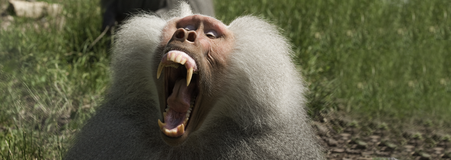 Malgré leurs grandes canines, les geladas sont végétariens ! Ce sont les molaires d'un animal qu'il faut observer pour connaître son régime alimentaire. Si elles sont pointues, c'est un carnivore !