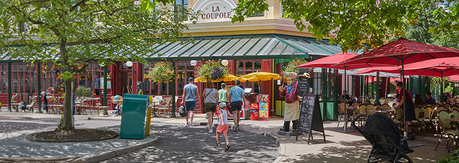 Envie d'une pause fraîcheur ? Profitez du service brasserie tout au long de la journée selon les horaires d'ouverture du parc.